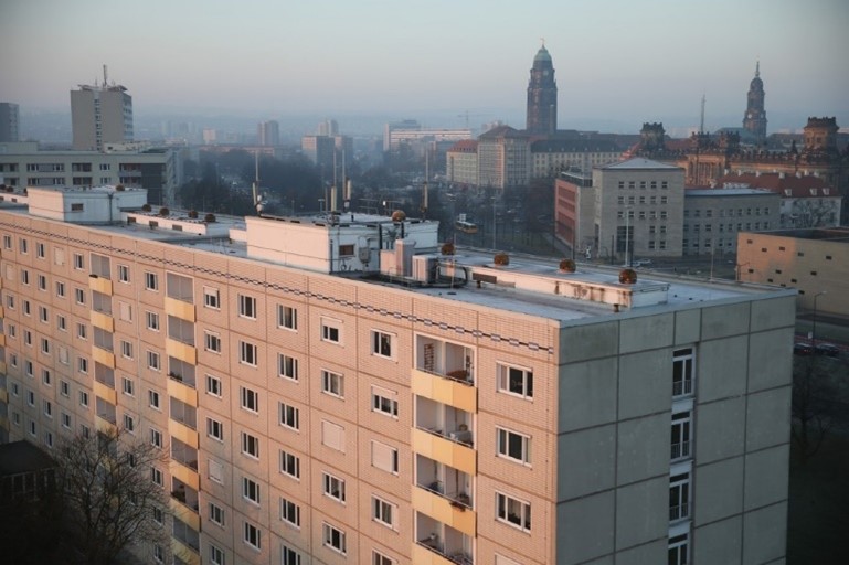 أما البناء الذي تم بناؤه خلال فترة الحكم الشيوعي في ألمانيا الشرقية والمصنوع من ألواح مسبقة الصنع، فهو أيضاً يهيمن على الضواحي، ووجودهم في أفق درسدن هو تذكير حاضر للسكان والزوار على حد سواء أن الأضرار الناجمة عن الحرب لا يمكن محوها في غضون 70 عاماً بل إنها في الواقع قد لا تختفي تماماً.