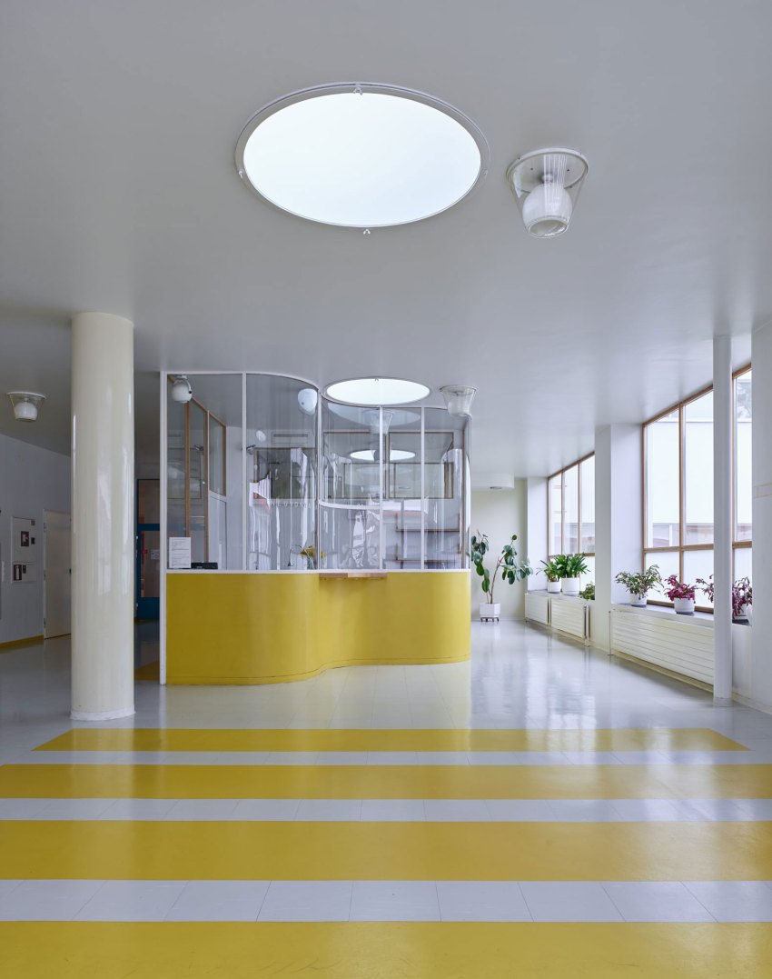 – تصميم ارتفاع النوافذ بما يتناسب مع مجال رؤية الشخص وهو جالس أو مستلقٍ، كما فعل آلتو للمرضى. - النظافة والصحة كأولوية تصميمية: