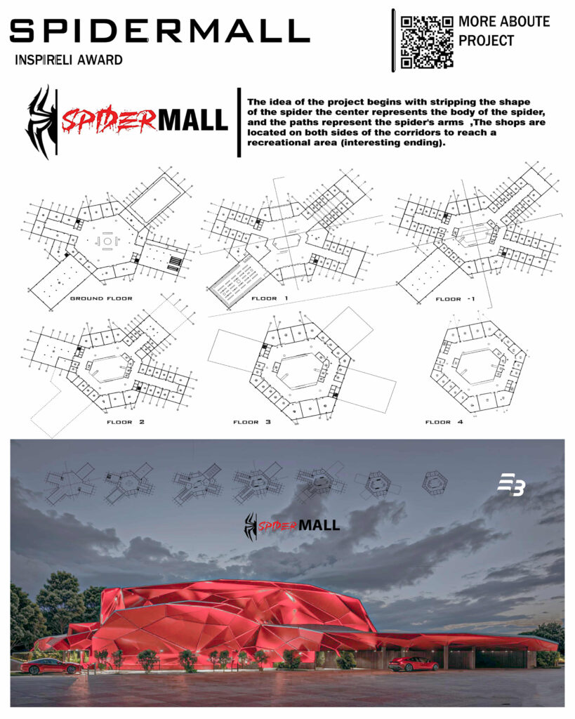نعم، مشروع SpiderMall له مكانة خاصة عندي. كان مشروعاً جامعياً على أرض مساحتها 25 ألف متر مربع، وكنت أبحث فيه عن فلسفة تتجاوز الشكل. ركزت على تعزيز المبيعات عبر التصميم، فدرست علم النفس السلوكي المرتبط بالشراء الاندفاعي، وصمّمت مسارات تجعل الزوار يمرون بمحلات معينة بطريقة غير مباشرة، ما يحفّز الشراء.